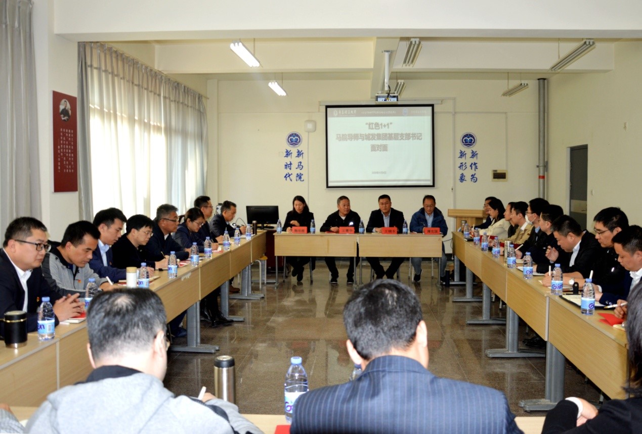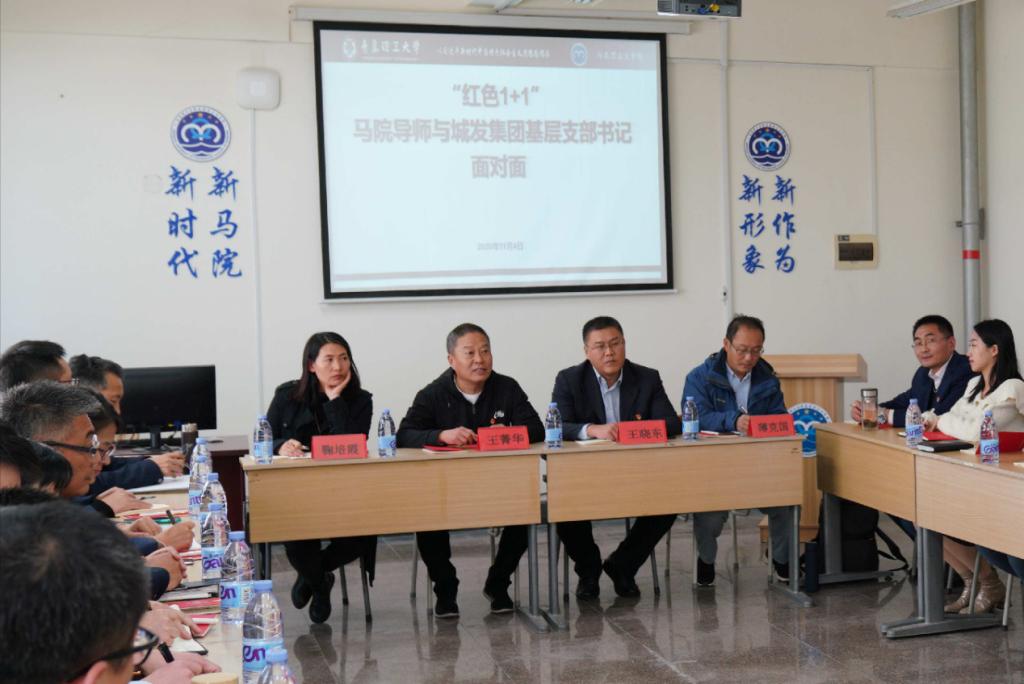 为贯彻落实新时代国企党建工作的新要求,探索企业基层党建工作新模式,11月4日下午,城发投资集团有限公司14名基层党支部书记来访青岛理工大学马克思主义学院,与马克思主义学院结对子的“红色1+1”导师,开展面对面交流活动。马克思主义学院党总支书记王菁华主持会议并讲话,马克思主义学院院长陈国庆、副院长华章琳及相关教师参加会议。座谈会上,双方围绕国企党务培训、党建实践创新及党建与业务相融合等问题进行深入地交流和研讨。
