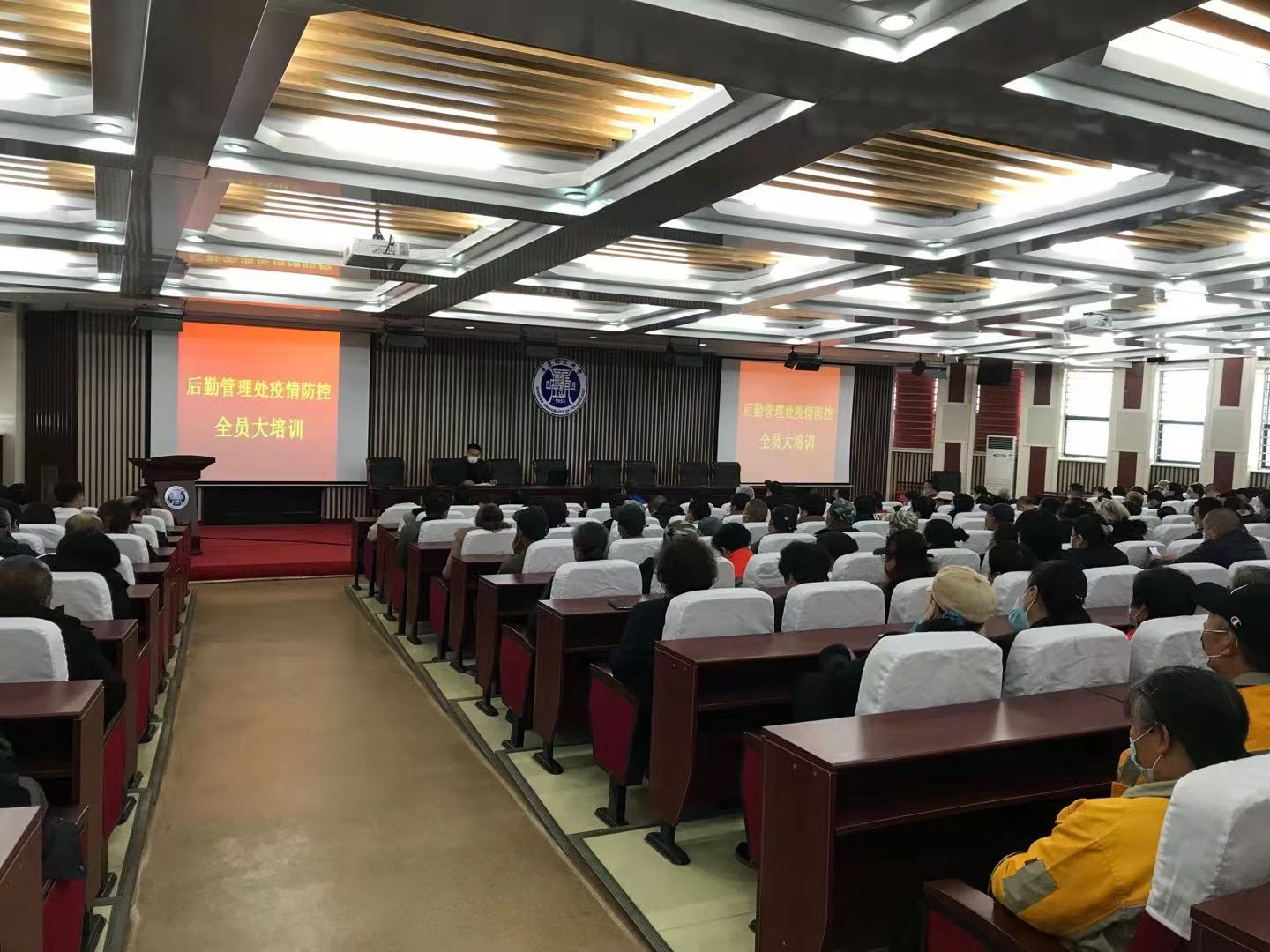 按照学校疫情防控领导小组的有关通知精神要求,为进一步强化员工防控意识,提升防控能力及应急能力,将各项疫情防控措施落细落实,后勤管理处于11月25日下午分别在市北校区和嘉陵江路校区组织开展了疫情防控全员大培训。培训会分别由后勤管理处处长金玉谟、副处长张红星主持,由校医院院长迟修成、校医院主任科员崔晓建负责主讲。后勤管理处各中心教职员工以及物业、经营房、托管餐厅工作人员等近500人到场签到参加培训。