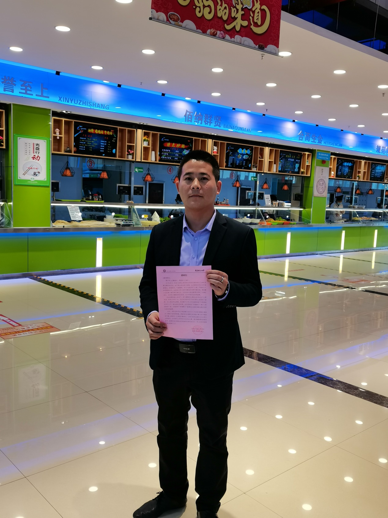 后勤管理处将这封感谢信转交给荷园餐厅关休经理,并对其事迹进行了表彰,感谢他以实际行动为师生服务。后勤管理处要求,饮食服务中心要宣传好关心师生、服务师生的事迹,号召全体员工向他学习,在日常工作中继续发扬关心师生的优良传统,进一步推进学校第三次党代会提出的“幸福理工”工程建设,为特色鲜明的高水平应用研究型大学建设目标贡献后勤人力量。(撰稿:冯玉坤;审核:乔海涛)