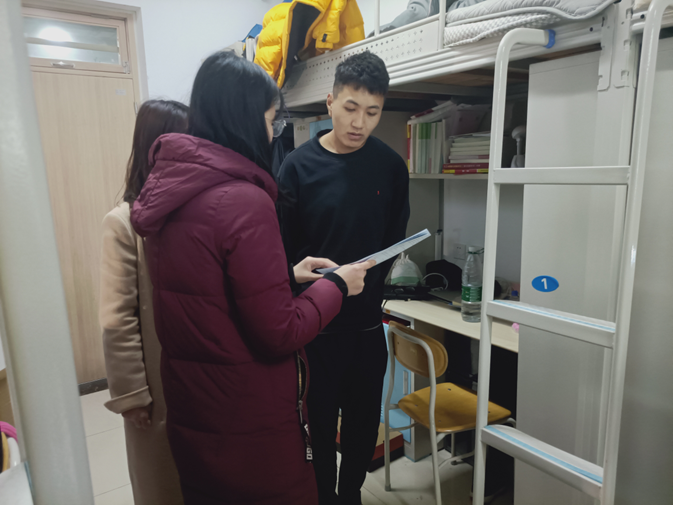在走访的过程中,辛雪梅、扎西央宗走访了多个毕业生宿舍,详细询问了学生的考研或就业进度,了解考研、考公同学们的学习情况,重点关注特殊困难生、少数民族学生毕业去向问题,与同学们就毕业形势进行了深入交谈,暖心提醒积极关注就业政策,激励同学们提升自身能力;临近毕业,要保持良好的规律作息和卫生整洁的宿舍环境,养成积极健康的心态,以便更好地完成学业和工作。