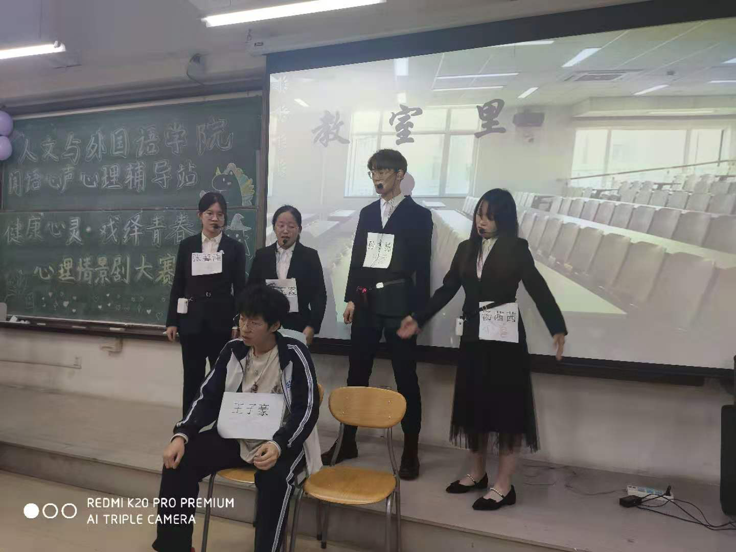 王振在致辞中指出学院历来重视心理健康工作,希望参赛的心理剧作品能与同学们共鸣,引发同学们的思考,让大家在表演中学会换位思考,提升自身素质。本次比赛6支参赛队伍围绕着发生在自己身边的恋爱、职业规划、拖延、适应及社会热点直播带货等主题进行演出,比赛现场,各支队伍热情饱满,向评委和现场观众展现了出色的心理辅导技能,不时赢得了观众的阵阵掌声,比赛现场气氛活跃轻松。汤茜茜等9位同学编演作品《“拖”掉你心里的那层纱》通过细腻的人物表演,把大学生拖延的矛盾冲突表现的淋漓尽致,观众的情绪随着表演而跌宕起伏,最终荣获第一名。广告201班的李纯同学获得最佳女主角,广告201班的王子豪同学获得最佳男主角。汉语言201班的李妍看后感慨很多:这些心理情景剧深深触动我的内心,让我觉察如何处理心理冲突。