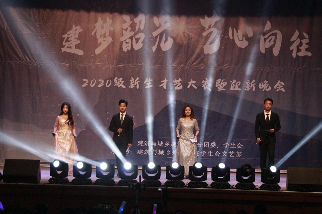 建梦韶光,奏响青春礼赞;艺心向往,璀璨学子风采。近日,由建筑与城乡规划学院分团委、学生会主办,学生会文艺部承办的“建梦韶光,艺心向往”2020级新生才艺大赛总决赛暨迎新晚会在市北校区礼堂圆满落幕。校工会曹伟、艺术与设计学院王睿、土木工程学院孙宇、建筑与城乡规划学院大学生艺术团团长宋昊轩、艺术与设计学院文体部负责人何家怡担任评委,建筑与城乡规划学院20级全体新生参加,学院党总支副书记高江、学工办主任、分团委书记王鹏飞、辅导员刘超、杨霈宣、王明慧、郭轶群、张宇、郑润琪到场观看。