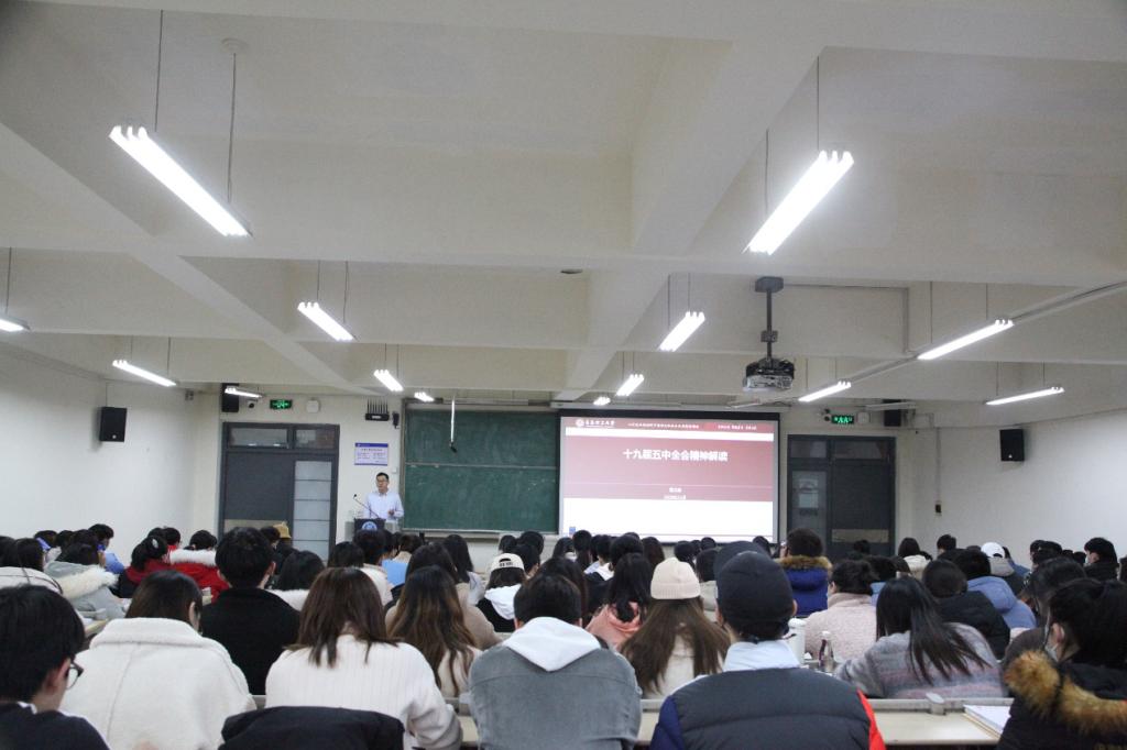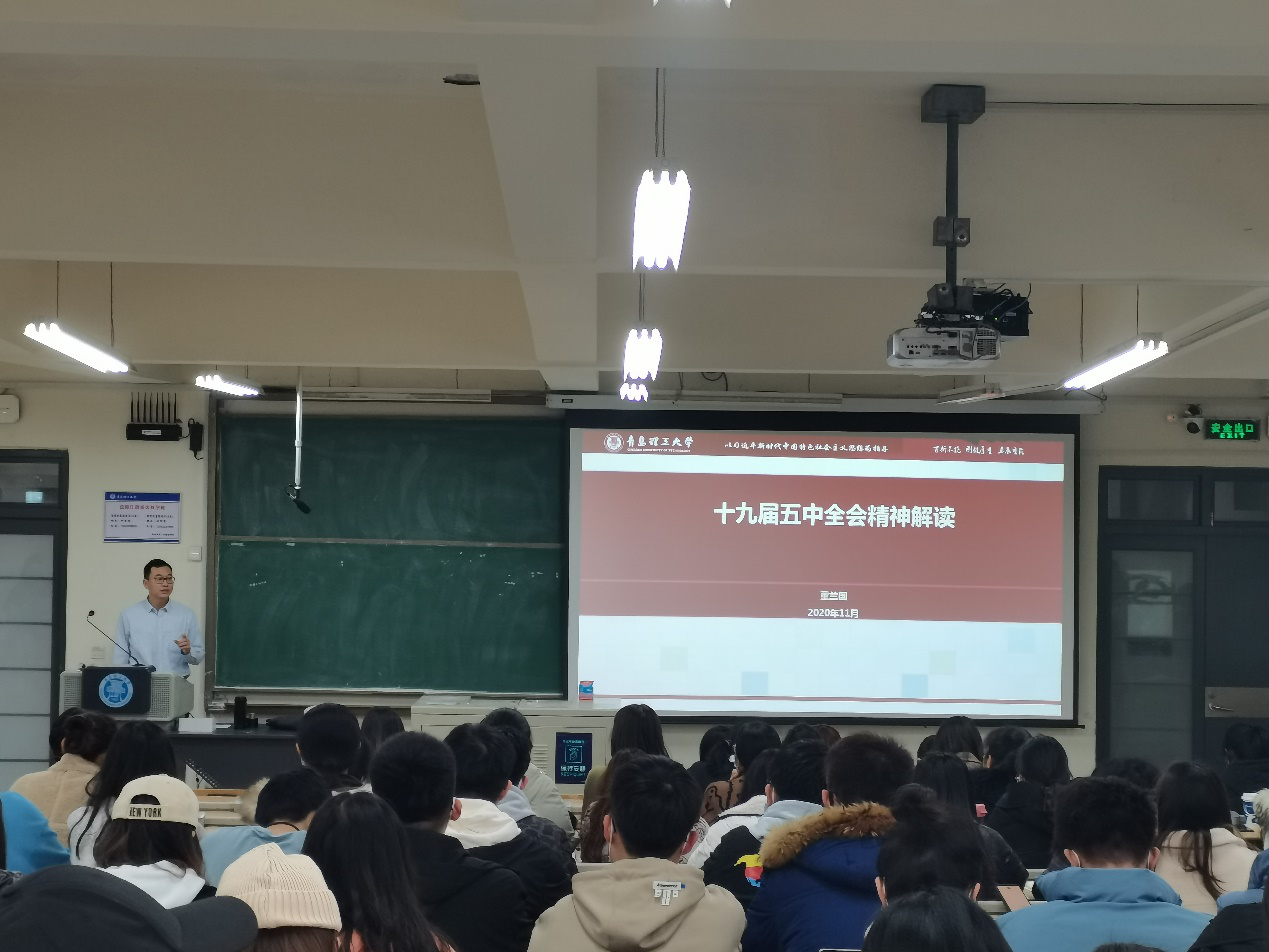 为深入学习贯彻党的十九届五中全会精神,商学院于近期在主教学楼B302教室组织开展党的十九届五中全会精神专题辅导学习,此次学习由商学院党总支副书记董兰国主讲,商学院全体学生党员、入党积极分子代表以及2019级、2020级的团支书参加本次学习。