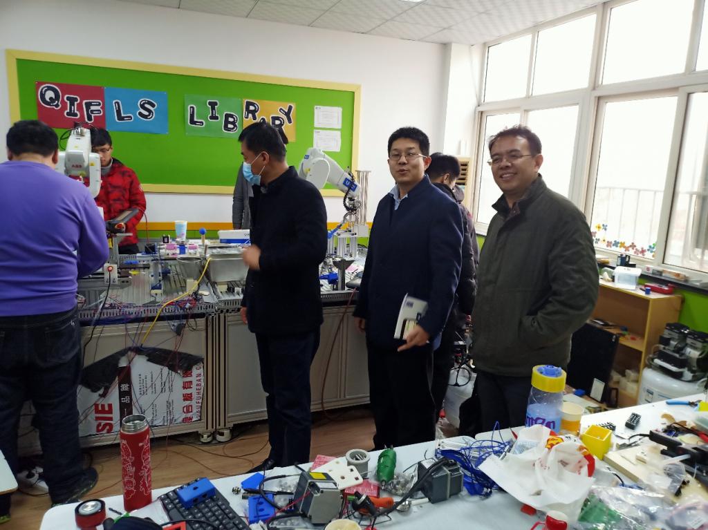 12月7日,信息与控制工程学院党总支书记董典同、副书记曲良波,院长助理周炜、通信教研室主任王绪虎一行四人专程赴学院合作办学企业青岛英谷教育科技股份有限公司教育实训基地调研并看望实训学生,英谷教育科技股份有限公司韩敬海总经理、白鸿涛副总经理和张玉星副总经理等负责人陪同走访调研。