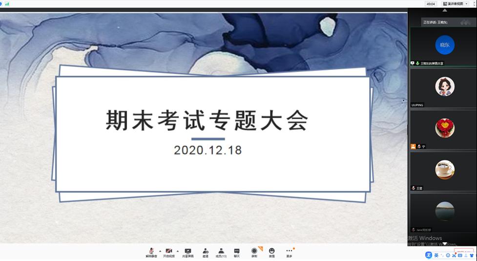 12月18日下午,人文与外国语学院召开线上期末教学工作会议,会议由副院长王晓东主持,各专业教研室主任、副主任以及教学秘书参加了会议。
