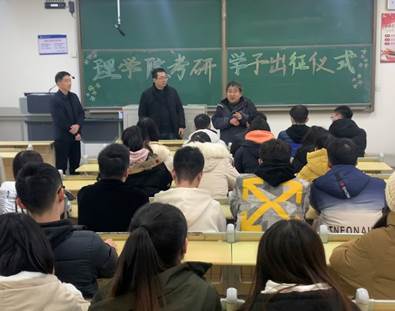 同学们好!院长于进伟首先向考研学子致以亲切的问候,并详细询问了同学们的报考和复习情况,鼓励同学们抓住机会,迎难而上,力争实现自己的考研梦想。希望同学们考研既要有思想上的重视,又要有取得成功的自信,进入考场要沉稳答题,遇到困难或问题时,及时与辅导员沟通联系,同时也要注意身心健康,保持良好的身体素质。副院长范兴奎为同学们讲解了数学答题的技巧,强调要重视数学的基础概念解析过程。