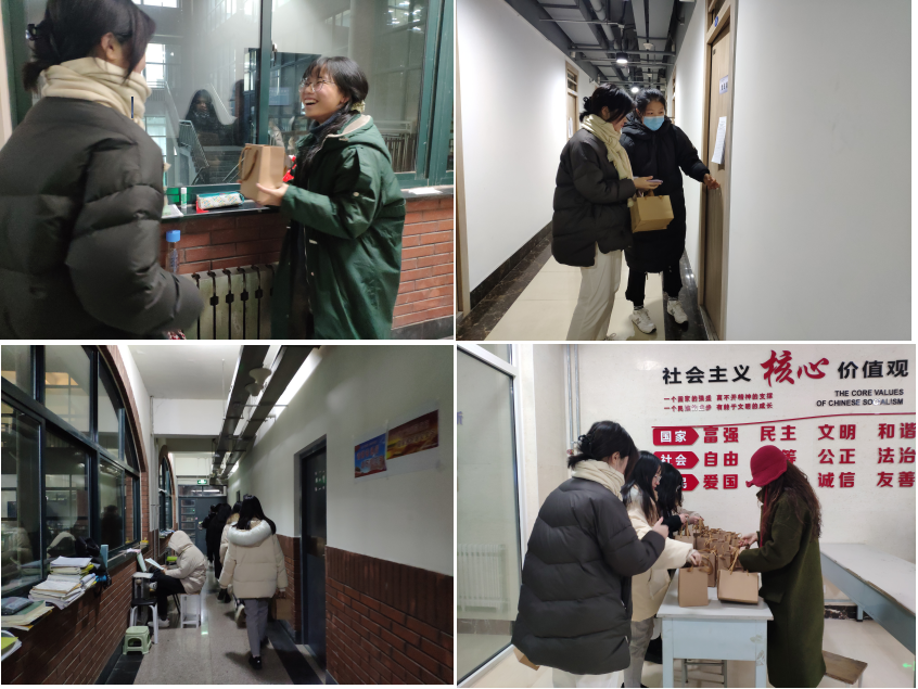 活动过程中,社会工作专业2018级学生为考研学长加油鼓劲,提醒学长们注意身体健康,在关键时刻更要劳逸结合、调整心态,以轻松愉悦的心情迎接考试,鼓励学长们坚定信念,胜利就在眼前,祝愿大家在研究生考试中取得理想成绩。考研学子纷纷表示备受鼓舞与感动,表示送达的礼包承载着学院师生对考研学子的深深关爱和祝福,增强了自己取得良好成绩的信心。