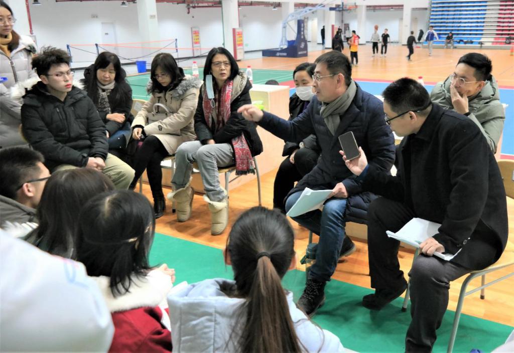 据张成福老师介绍,之所以在期末考试的间隙还要进行第二次带妆联排,一是锻炼演员的台上经验,把握好舞台站位和声音、动作、表情方便的度,理顺幕与幕、场与场之间的衔接;二是全面组建和检验后勤团队,包括但不限于剧务总调度、灯光、音乐、音响、服装、道具、场务、摄影摄像、文宣等,对各岗位的具体工作和岗位与岗位之间的衔接与互相补位进行磨合,打造一支与演员演出深度融合的一体化团队;三是充分吸收观众视角的意见和建议,从另一个角度为剧本修改和舞台表演提供智慧源泉。通过本次联排编剧可以利用假期时间,从专业指导教师和观众的二维角度继续完善剧本。演员和负责剧务的同学也都明晰了自己在剧中的基本角色和功能站位,同时可以利用假期有目的地学习、提升自己,为年后话剧的正式演出做好充分准备。