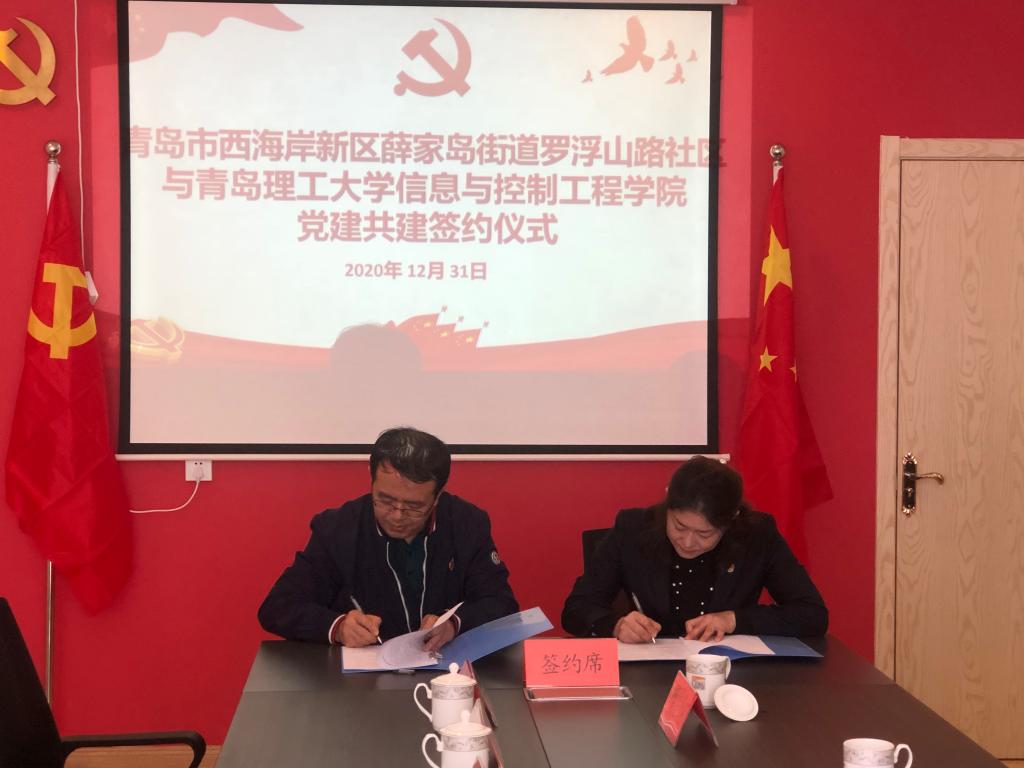 为引导大学生深入基层、服务社会,充分发挥高校和社会的联动效应,创新高校“三全育人”模式,12月31日上午,信息与控制工程学院与薛家岛街道罗浮山社区党建联建暨大学生社会实践基地签约揭牌仪式在罗浮山社区党群服务中心举行。西海岸新区薛家岛街道党工委副书记、社区治理工作队队长秦艳博、罗浮山社区党委书记兼社区主任薛淑爱,第一书记栾巨轮,学院党总支书记董典同、党总支副书记曲良波、分团委书记兼学工办主任张英华、组织员毕记满、辅导员薛腾飞及学生代表与罗浮山社区相关部门负责人和党员代表参加相关活动。