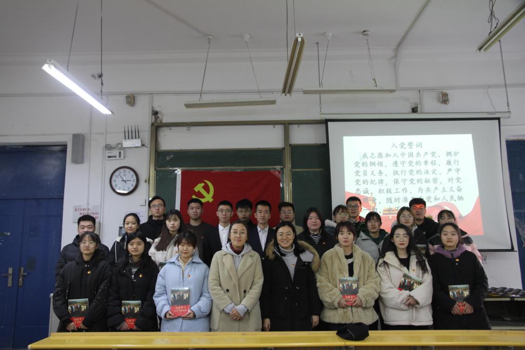12月30日下午,高等职业学院学生党支部在一教229举行2020年度新发展党员的入党宣誓仪式,党总支副书记范晓光,辅导员常伟,22名预备党员参加本次活动。