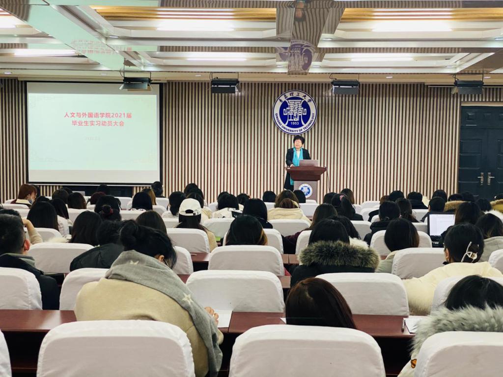 1月5日下午,人文与外国语学院于嘉陵江路校区主教学楼东报告厅召开2021届毕业生实习就业动员大会,本次动员大会由副院长王晓东、党总支副书记王振担任主讲,辅导员辛雪梅主持,辅导员扎西央宗及2021届全体毕业生参加本次大会。