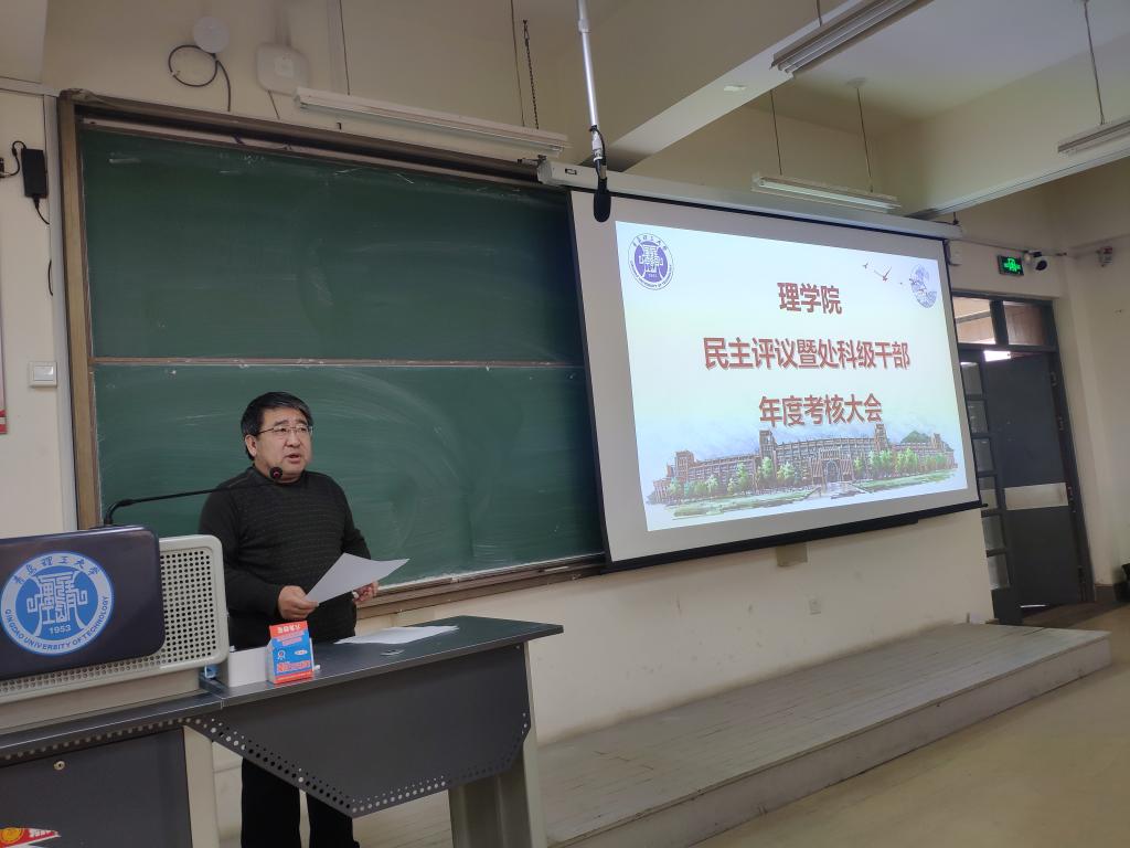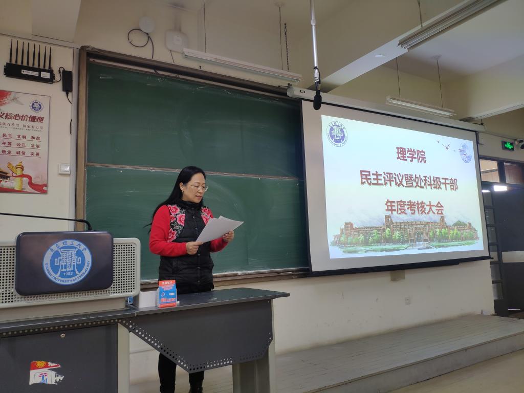 根据学校《关于做好2020年度二级单位领导班子、处科级干部考核工作的有关通知》要求,1月5日上午,理学院在嘉陵江路校区主教学楼B232组织召开2020年度考核测评会议,校考核领导小组办公室成员田洪杰,学院领导班子成员、全体教职工参加。会议由学院党总支书记邹传波主持。