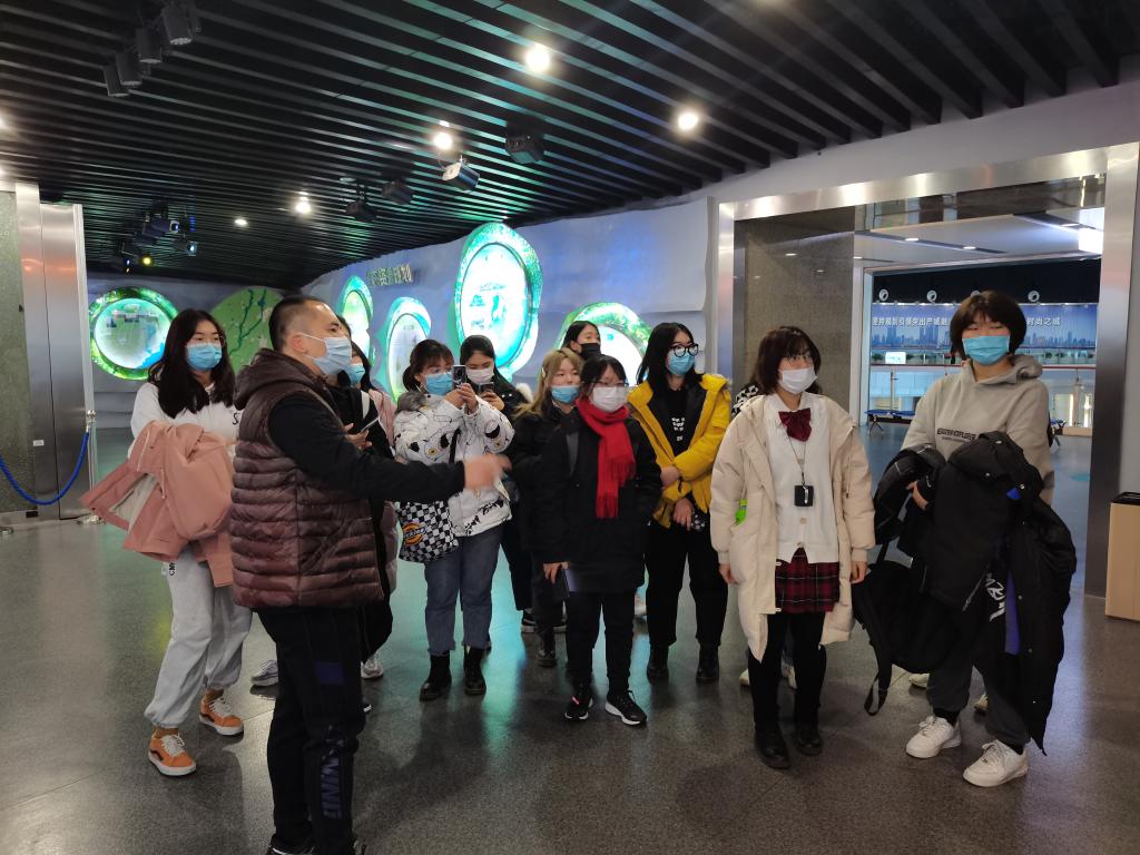 在青岛市规划展览馆,师生认真听取了馆内讲解员讲解的城市规划编制脉络,包括百年规划、战略规划、总体规划模型、详细规划、专项规划、规划公示长廊等部分,充分展现了青岛的城市空间格局演变及各层次规划编制成果。讲解结束后,路宁针对青岛市专项规划部分,结合城乡规划专业所关注的重点进行细致解读。