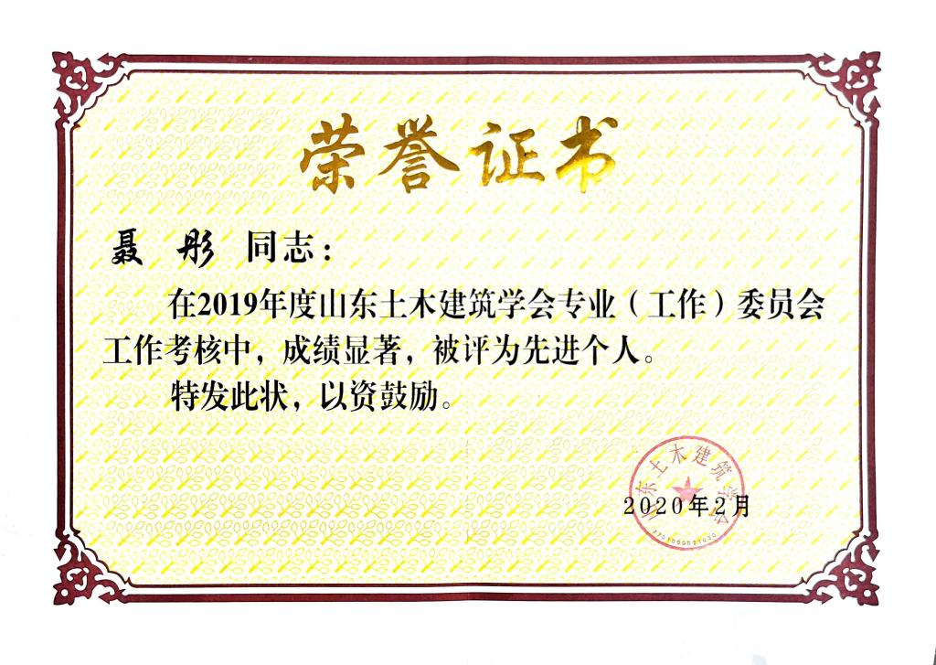 近日,由山东土木建筑学会主办,中铁十四局集团有限公司、中铁十局集团有限公司联合承办的山东土木建筑学会2020年年会暨八届二次理事会在济南结束。我校建筑与城乡规划学院郝赤彪教授作为常务理事代表学校参加会议,聂彤老师荣获2019年度山东土木建筑学会专业委员会先进个人称号。