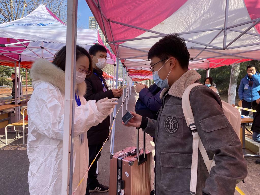 “老师好,我回来啦”返校学生脸上洋溢着幸福的笑容朝着辅导员老师打着招呼。“我听说好几个学校已经延迟开学了,我还在担心我们学校能不能正常开学,现在我回来了,就很放心了,可以好好写写我的毕业论文了。”