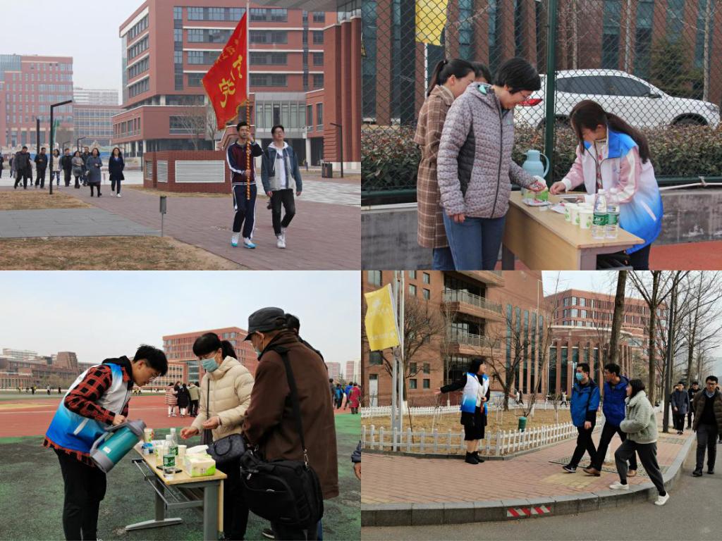 奋斗新征程,教职工“健步行”凝聚新学期干事创业精气神。新校区、新学期、新梦想、新启航。观展完毕后,商学院全体教师齐聚商学院办公楼下,用“健步行”的方式感受中国共产党走过的百年历程,感受青岛理工大学近年来的快速发展。本次活动将休闲健身与美丽新理工融为一体,路线起于商学院大楼,穿过东、西操场,途径主教学楼,结束于商学院大楼。活动期间,健步行路线沿途有学生志愿者做路线引导,便于老师们到达下一目的地打卡。同时,在西操场和东操场分别设立“能量补给站”,为老师们提供温水、纸杯及糖果,方便老师们休息。