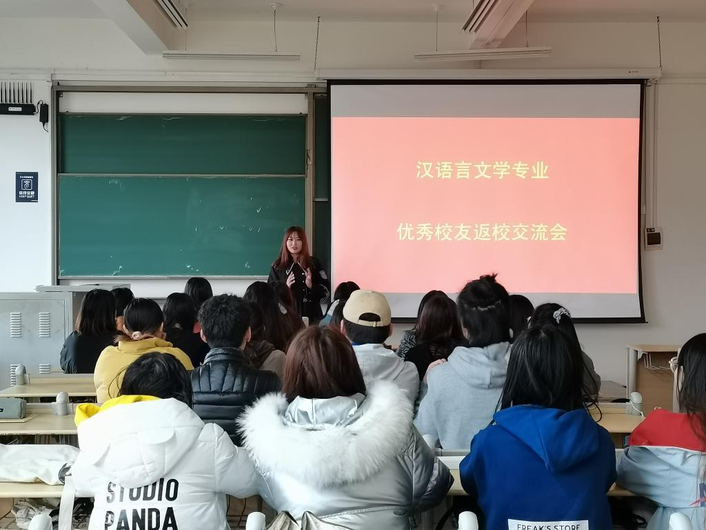 为强化专业教学,引导学生早日做好自身规划,提早做好进入社会的准备,人文与外国语学院汉语言文学专业于本学期启动优秀校友返校交流系列活动。3月11日,该专业2019届优秀毕业生隋誉稼应邀来到学校,为学弟学妹们分享自己的成长经历,开启了优秀校友返校交流系列活动的第一场。