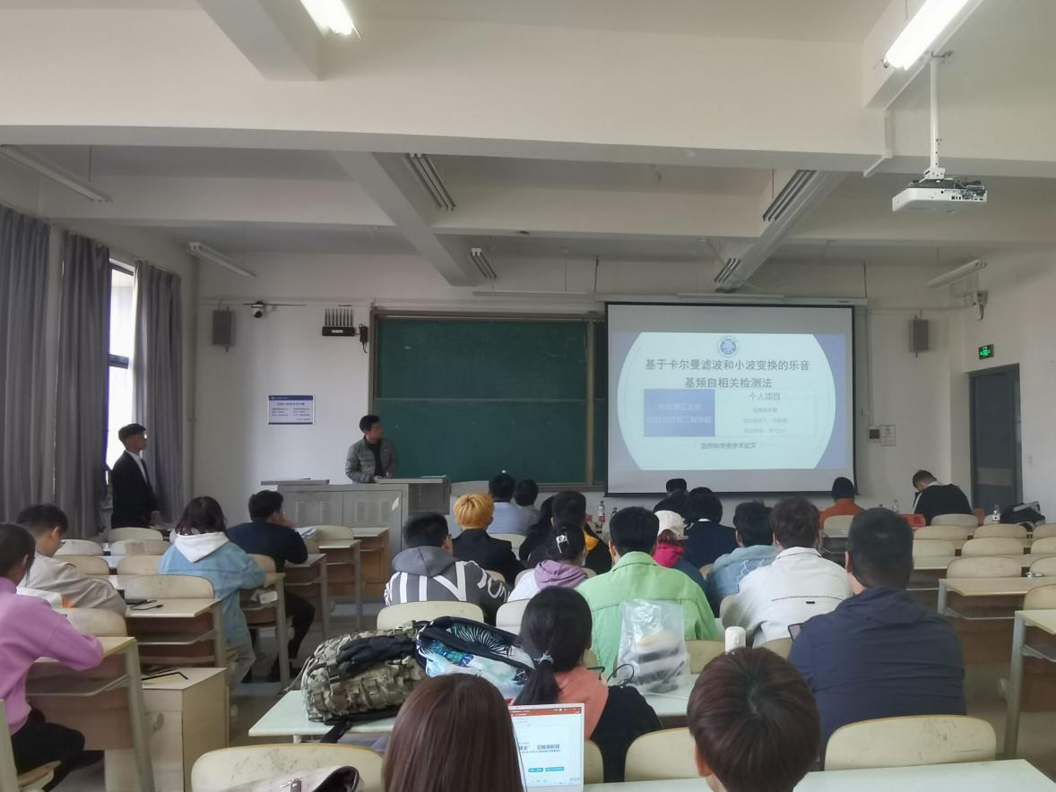 本次答辩会共有21支队伍参赛,答辩会分为上下两个半场。其中自然科学与科技发明制作类8支团队为上半场,社会调查报告类13支团队为下半场。答辩会按抽签决定比赛顺序,每组五分钟PPT展示时间,结束后由评委老师打分,赛后公布各队伍分数。上半场有团队针对MIDI键盘映射编曲的缺陷,提出了一种基于卡尔曼滤波和小波变换的乐音基频自相关检测方法,有的团队基于语音识别与按键触发技术设计双模式智能垃圾分类系统,强强争霸,学术气氛分外浓郁;下半场,各团队在紧扣时代热点,经过深入调研的基础上,形成调研报告,展示调研成果。评委们对各项目进行提问,并提出修改意见和建议。