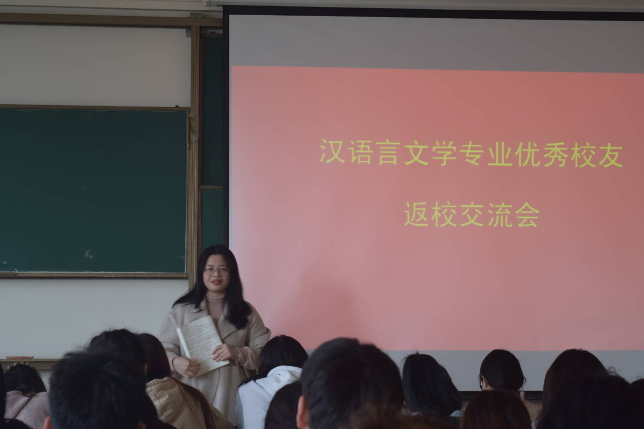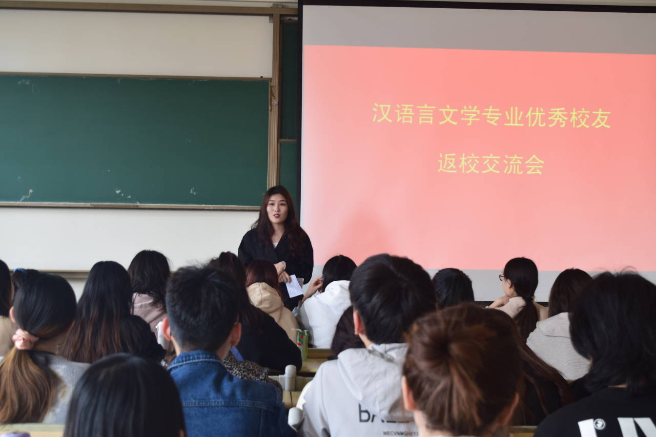 为增强汉语言文学专业在校学生对自己专业的认知和社会对该专业的实际需求,了解考研基本知识,人文与外国语学院汉语言文学专业于3月25日举办第二场优秀校友返校交流活动。该专业2018届、2020届优秀毕业生王苏晖、管月应邀来到现场,结合自己的考研经历和班级同学的工作情况,为学弟学妹们提供了一场干货满满的分享会。专业教研室主任张成福副教授主持会议。