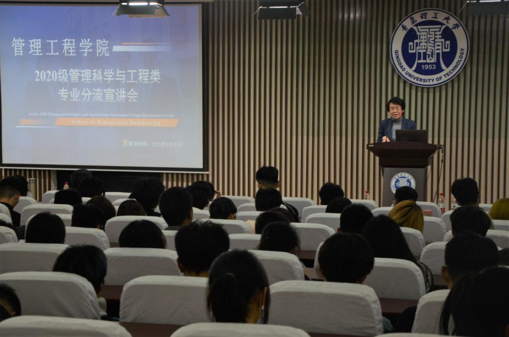 为提高人才培养质量,管理工程学院积极推进“按类招生、分流培养”的人才培养改革模式,实行近两年来取得了良好成效。为做好大类招生模式下学生专业分流工作,加深同学们对分流专业的认识、减少专业选择的盲目性,3月31日下午,管理工程学院在嘉陵江路校区1号教学楼一楼东报告厅召开了2020级管理科学与工程类专业分流宣讲会。学院党总支书记梁虹、教学副院长申建红、学院各专业教研室负责人、辅导员张心怡及2020级管理科学与工程类全体学生参加会议。会议由学院党总支副书记于利俊主持。