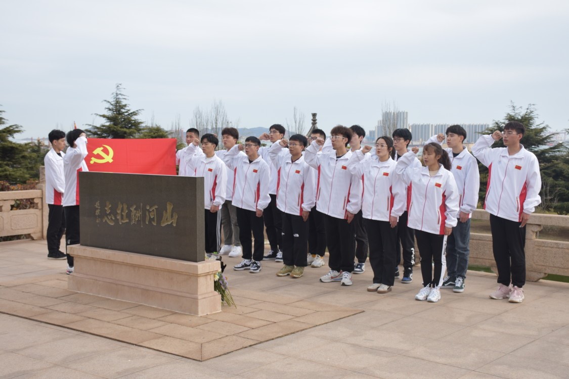 讲解结束后,在分团委委员张铭的带领下,党员与入党积极分子面向救火消防英雄纪念碑、面向鲜红的党旗庄严宣誓:“我志愿加入中国共产党,拥护党的纲领,遵守党的章程,履行党员义务……”,铿锵的入党誓词响彻天际,让全体同学深深感受到党员的责任、使命、荣耀。在场的党员同志进一步坚定了信念,要以自身的实际行动积极实践誓词,以饱满的热情发挥共产党员的先锋作用。在举起右手的那一刻,就表明了他们决心继承先烈遗志,树立了为党、为国家、为人民牺牲一切的理想。