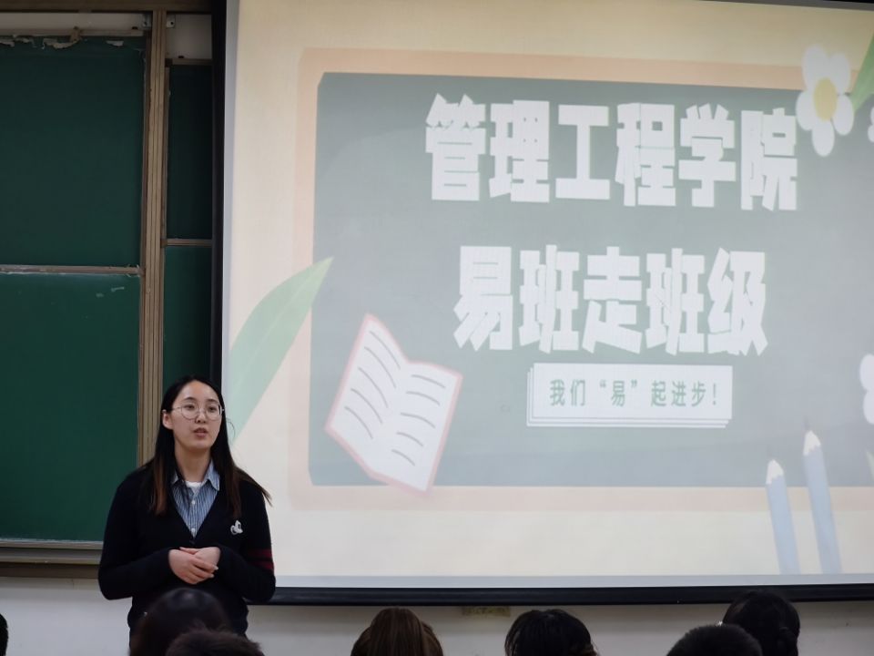 为进一步加强易班建设,充分发挥易班在学生思想教育、日常管理和学习生活服务方面的作用,近日,管理工程学院于嘉陵江路校区B131教室召开“易班走班级”易班工作推进会。易班工作分站指导老师李佳妮主持会议,易班工作分站全体成员以及各班负责人参加会议。