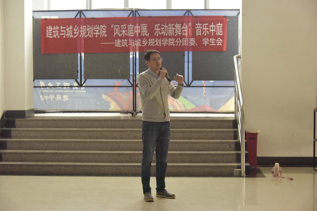 为增强校园人文艺术修养,激发同学们对艺术的精神追求,进一步丰富学院的创意文化氛围,近日,建筑与城乡规划学院于建筑馆二楼中庭举办“风采庭中展,乐动新舞台”音乐中庭暨“创意文化街”主题系列活动开幕式。活动由建筑与城乡规划学院分团委学生会承办,学院分团委书记、学工办主任王鹏飞为活动开幕式致辞。