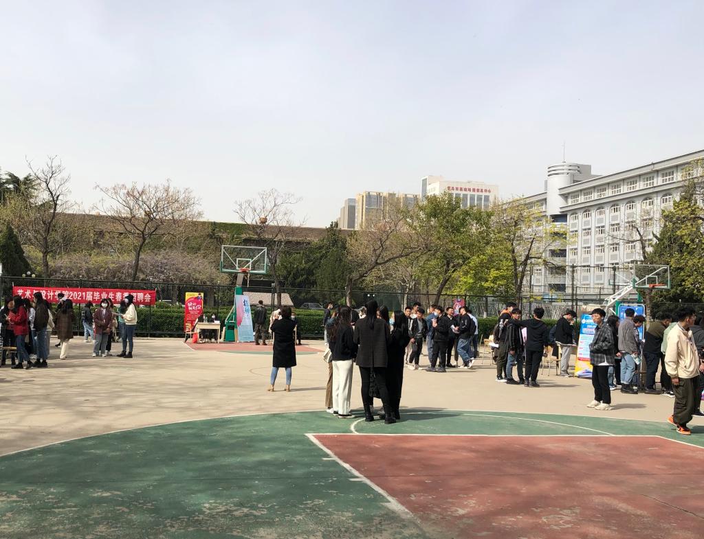 为更好的拓宽毕业生的就业渠道,大力搭建毕业生与用人单位的交流平台,4月16日下午,艺术与设计学院在市北校区篮球场举办了2021届毕业生春季双选会。本次双选会共邀请到家居装饰、教育培训、产品设计、文化传媒等各行业近20家用人单位。学院党总支副书记徐佐君及各年级辅导员与用人单位代表及2021届毕业生亲切交谈,分别了解用人单位招聘需求以及学生求职意向与规划。