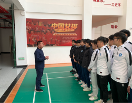 王龙向队员介绍了“女排精神”形成的历史背景,解读了“女排精神”内涵,即扎扎实实,勤学苦练,无所畏惧,顽强拼搏,同甘共苦,团结战斗,刻苦钻研,勇攀高峰。