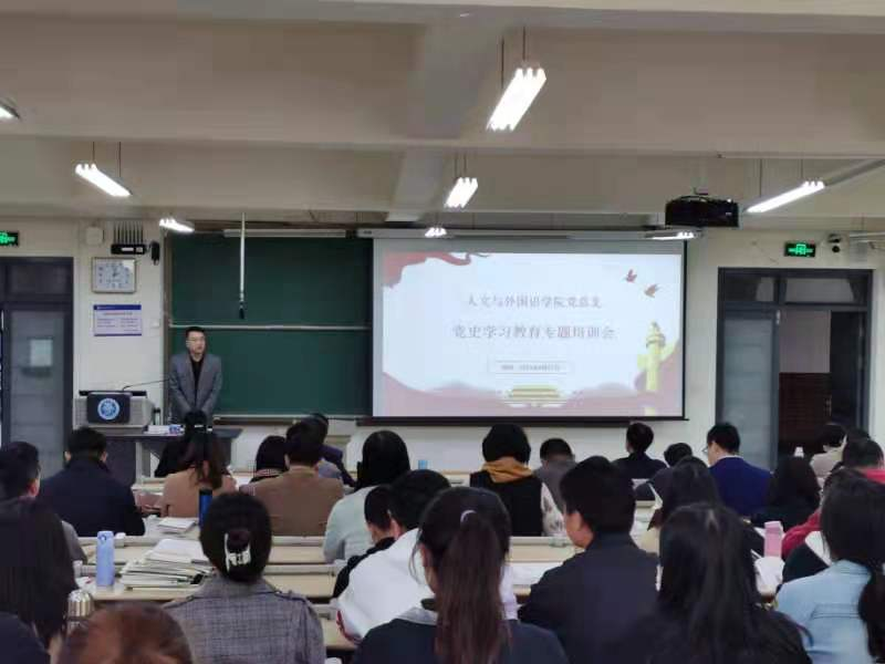 为扎实开展党史学习教育,不忘初心使命,传承红色基因,4月21日下午,人文与外国语学院党总支在嘉陵江路校区一号教学楼B230举办了“党史学习教育专题培训”。本次培训邀请马克思主义学院副教授刘金德、李晓辉分别作了专题讲座。学院党总支副书记王振主持会议,学院全体教工和学生党员参加了学习。