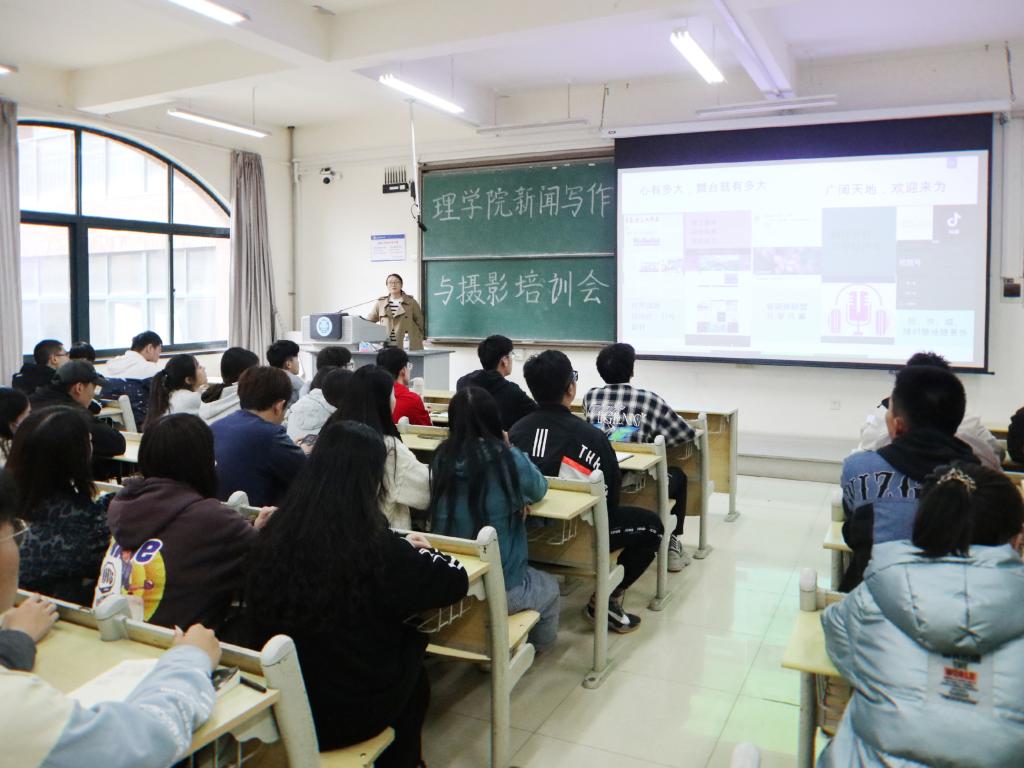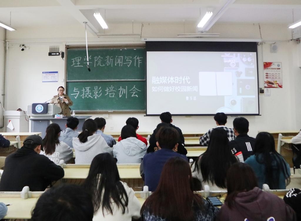 为进一步提高学院新闻宣传工作质量和水平,4月21日下午,理学院在嘉陵江路校区主教学楼B209开展“融媒体时代如何做好校园新闻”专题培训会,宣传部曹玉洁老师主讲,党总支副书记刘聘主持培训会。