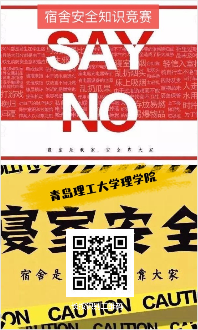 为进一步提高学生宿舍安全意识、规范宿舍安全行为,防患宿舍安全问题的发生,贯彻执行学院宿舍管理服务体系,理学院宿舍管理委员会于4月22日组织开展宿舍安全线上知识竞赛线上活动。