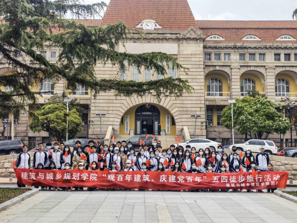 徐徐春风送暖意,五四精神入人心。在五四青年节即将到来之际,为激发青年学生爱国热情,建筑与城乡规划学院团委于4月29日组织开展“观百年建筑、庆建党百年”迎五四徒步旅行活动。活动旨在让同学们通过徒步旅行的方式参观青岛的百年建筑历史,在五四青年节到来之际向伟大祖国表达祝福。辅导员杨霈宣、郑润琪带队,学院60余名团学骨干参加了本次活动。
