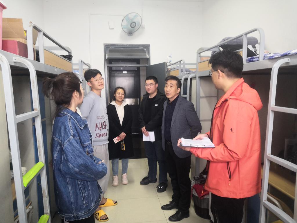 检查过程中,各位老师主要针对学生宿舍用电、宿舍内生内务、通风消杀等问题进行排查。各年级辅导员强调,五一假期离校前要确保切宿舍断电源、关好宿舍门窗,宿舍成员要对宿舍进行安排隐患排查;离校同学应在整理整洁个人床铺后方可离开。留校同学务必注意用电用水安全,避免使用大功率电器,每日做好通风消杀工作,做好防疫措施。留校学生在假期期间要严格遵守宿舍内务标准要求,做好每日定时打扫宿舍卫生,保持地面桌面清洁,及时倾倒垃圾,及时通风消杀。