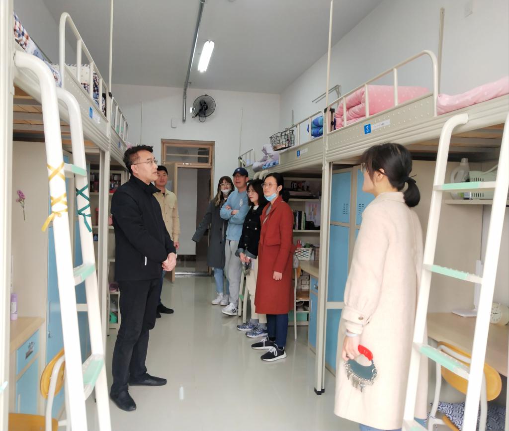 为落实文暖寓语公寓管理,引导广大学生培养良好的生活和卫生习惯,提高学生安全防范意识,4月30日下午2时,人文与外国语学院党总支副书记王振带领全体辅导员深入学生宿舍,开展“五一”节前安全卫生大检查工作。