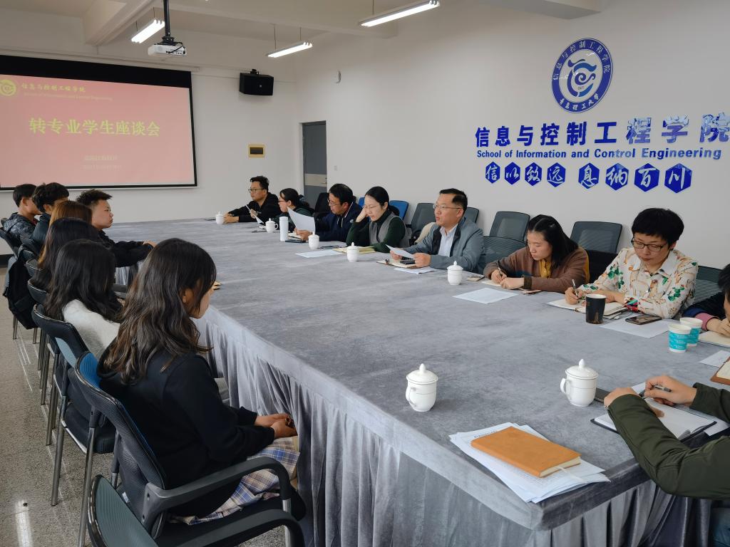 为更好地了解转专业学生的学习要求,促进学院学风建设,5月8日下午,信息与控制工程学院在主教学楼A507召开了转专业学生座谈会。院党委书记高洁、院党委副书记曲良波、副院长宋传旺、院团委书记张英华、教学科研办田志超、侯韵老师,相关教研室主任以及全体2019级辅导员参加了本次座谈会。会议由宋传旺主持。