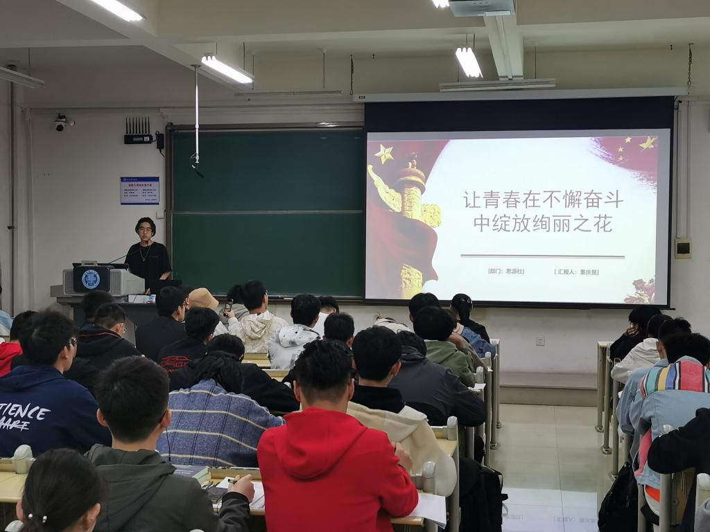 5月7日,土木工程学院于嘉陵江路校区B206教室举办第七十八期大学生思政论坛,本次思政论坛以“学习习近平总书记考察清华大学重要讲话精神”为主题开展,由思源社董庆昱主讲,学院2019、2020级团支书及学生骨干参加本次论坛。