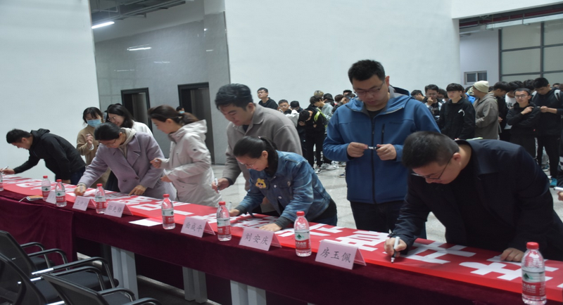 开幕式上,曲成平致辞。他强调心理健康在生活、学习及各个方面的重要性,学院高度重视学生心理健康,积极开展学生心理健康教育,引导学生健康成长,心理育人也是学院大力推进的“三全育人”十大育人体系之一。表达了对各位同学的期许,鼓励同学们以积极健康的心态奋发努力,开拓创新。随后,土木196班柴荣杰作为学生代表发言,学院啦啦队带来啦啦操表演,为本次开幕式增添了活力与激情。最后,各位参会人员在横幅上留下自己的签名和祝福,开幕式圆满结束。