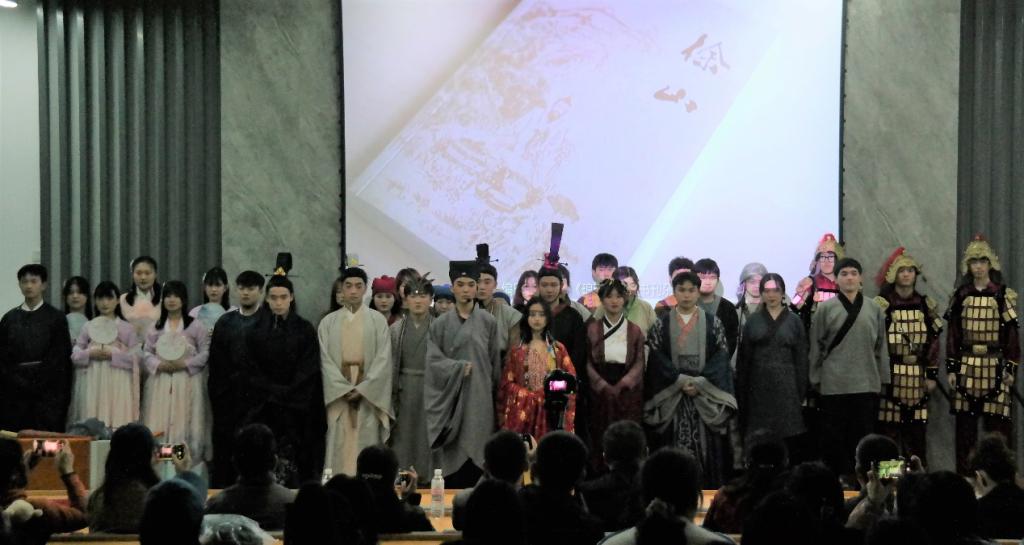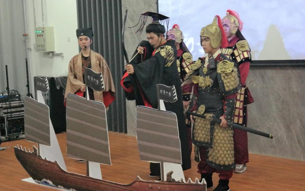 5月12日,以“献礼建党百年,传承非遗文化”为主题的大型历史古装话剧《东渡长歌》在嘉陵江路校区演出成功。在青岛西海岸新区非物质文化遗产保护中心大力支持下,作为2021年度国家非物质文化遗产保护专项资金支持项目,我校人文与外国语学院汉语言文学专业师生编剧、导演,全校各学院不同专业70余名学生利用节假日、周末和学习之余,历时半年多参与、排练徐福东渡的历史故事《东渡长歌》,为建党百年献礼。