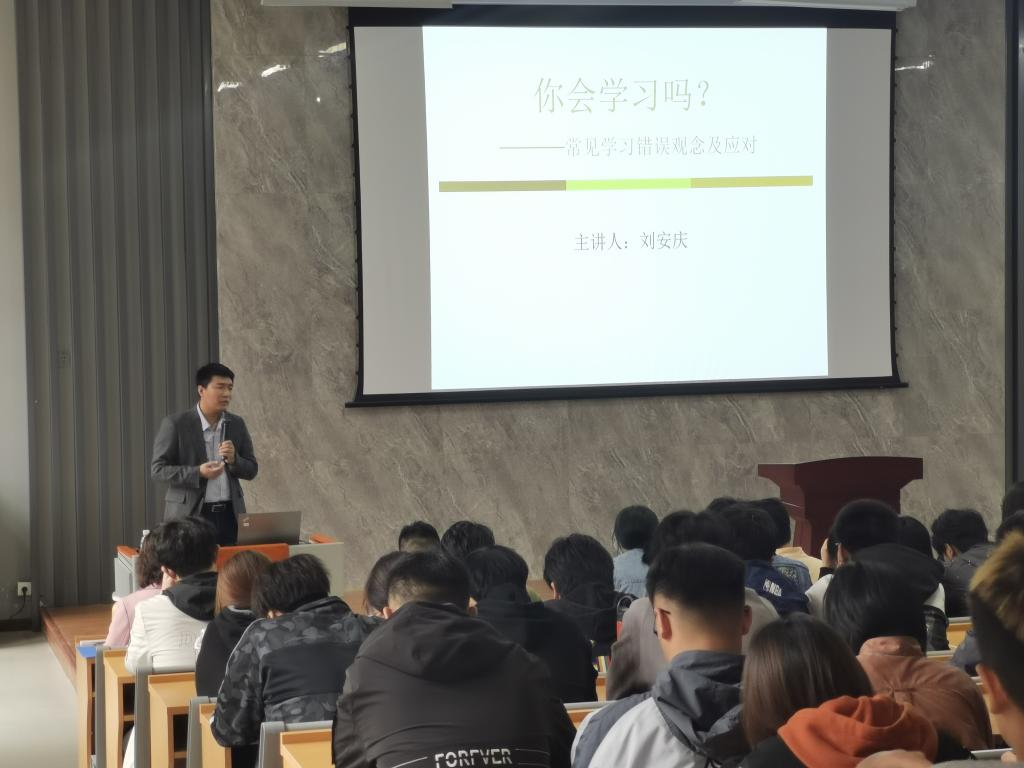 为宣传普及心理健康知识,深入开展心理健康教育,5月12日下午,管理工程学院在嘉陵江路校区综合服务中心202报告厅举办了管理工程学院第九届“漫步心灵,悦动前行”心理健康节教育专题讲座,邀请到青岛理工大学心理健康中心主任刘安庆老师以《你会学习吗?——常见学习错误观念及应对》为题就学习心理层面进行专题教育讲座。会议由管理工程学院辅导员张心怡主持,管理工程学院全体学生干部和班级心理宣传员参加了会议。