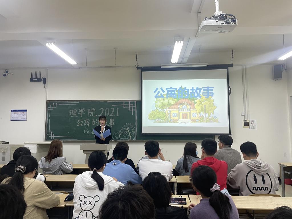 为促进学院宿舍内部的团结、和谐和健康发展,促使学生养成良好的生活习惯,增强学生的团结协作和创新能力,共建公寓文化,理学院宿舍管理委员联合学院学生会宣传部、综合权益部于5月12日晚在主教学楼B423举办组织公寓的故事活动,辅导员袁洪孝参加本次活动。