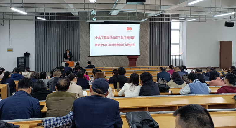 5月12日下午,土木工程学院在嘉陵江路校区C2-1-212召开全院教职工大会,部署年度工作任务,全面推进党史学习与师德专题教育工作。
