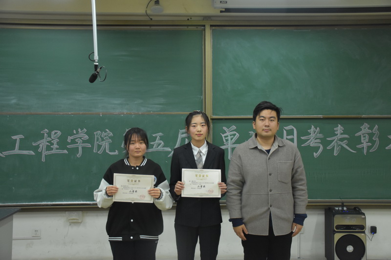 邵先锋对本次月考成绩优异的同学表示祝贺,对学院举办单词月考给予充分肯定,并强调英语在之后的学习与工作中的重要性,希望同学们能借助“单词达人”英语月考,积极地投入到英语的学习之中,不断提升自身的英语素养,促进学院的学风建设。最后,他鼓励同学们积极准备即将到来的英语四、六级考试,并祝愿同学们取得理想成绩。李恺宣读本次月考个人及集体获奖名单,老师们为获奖同学以及优秀班集体颁奖并合影留念。