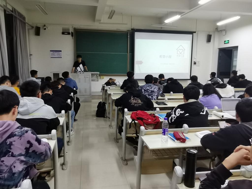 卓越土木191班团支书吴跃忠带领同学观看希望小屋的介绍短片,班长李宜航向大家详细地介绍希望小屋工程。团支部其他成员还邀请了希望小屋关爱工作的学生现场分享希望小屋故事,加深同学们对希望小屋的认识,激发大家的社会责任感。