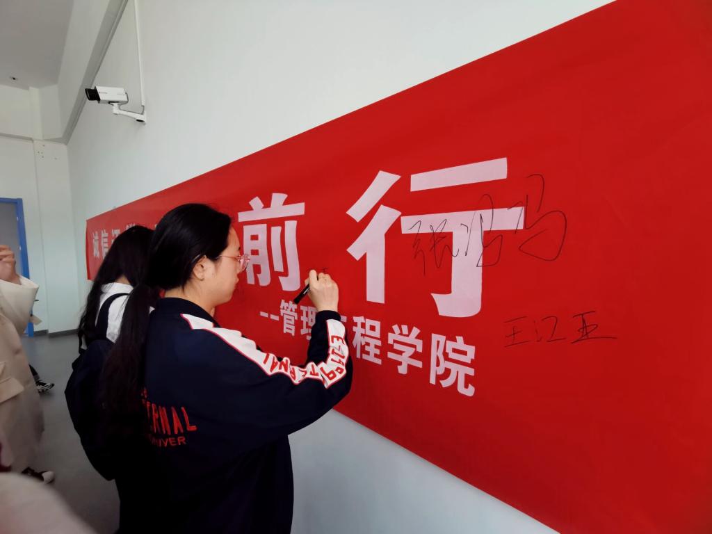 会议开始,韩群为在场学生认真解读了毕业生还款确认、还款注意事项、贷款利率、提前还款、逾期还款及罚息等相关内容,同时详细说明了按时还款的重要性以及违约的后果,进一步强化同学们对助学贷款还款的认识,引导学生诚信还款。其次,为增强学生履约意识珍惜个人征信记录,在毕业生辅导员韩群的带带领下,全体参会同学举起右手,庄严宣誓,最后,同学们纷纷在诚信横幅上签下自己的名字。