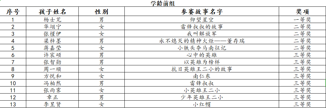 比赛以录制讲故事短视频的方式参赛,共收到学前、小学、初中三个年龄段作品38个,共评出一等奖4个、二等奖12个、三等奖22个。