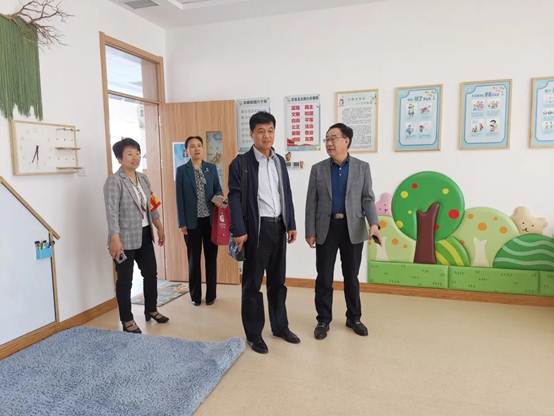 董主席一行来到小学教室,了解我校教职工子女的学习情况,为全体小学生小朋友送上节日的祝福。