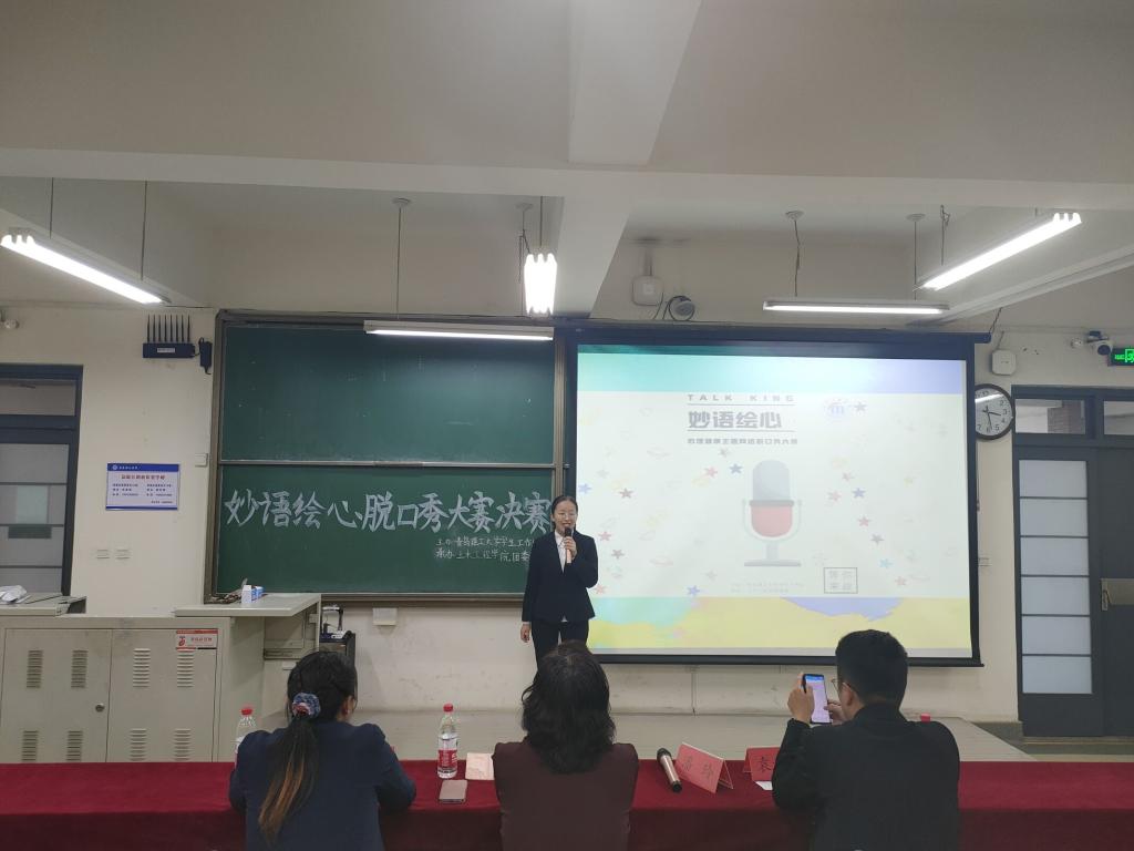 6月3日,我校“妙语绘心”脱口秀比赛在嘉陵江路校区B404教室落幕,本次比赛由学生工作处心理健康教育中心主办,土木工程学院争鸣演讲协会承办。人文与外国语学院副教授潘玲、宣传部杨健、学生语言艺术中心原主任袁世祯受邀担任评委。