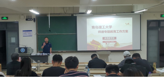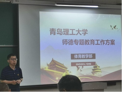 6月16日下午,体育教学部在嘉陵江校区B230教室召开全体教职工大会,传达学校内涵式高质量发展及“双高”建设启动大会精神,集中学习《青岛理工大学师德专题教育工作方案》。会议由体育教学部主任王龙主持。