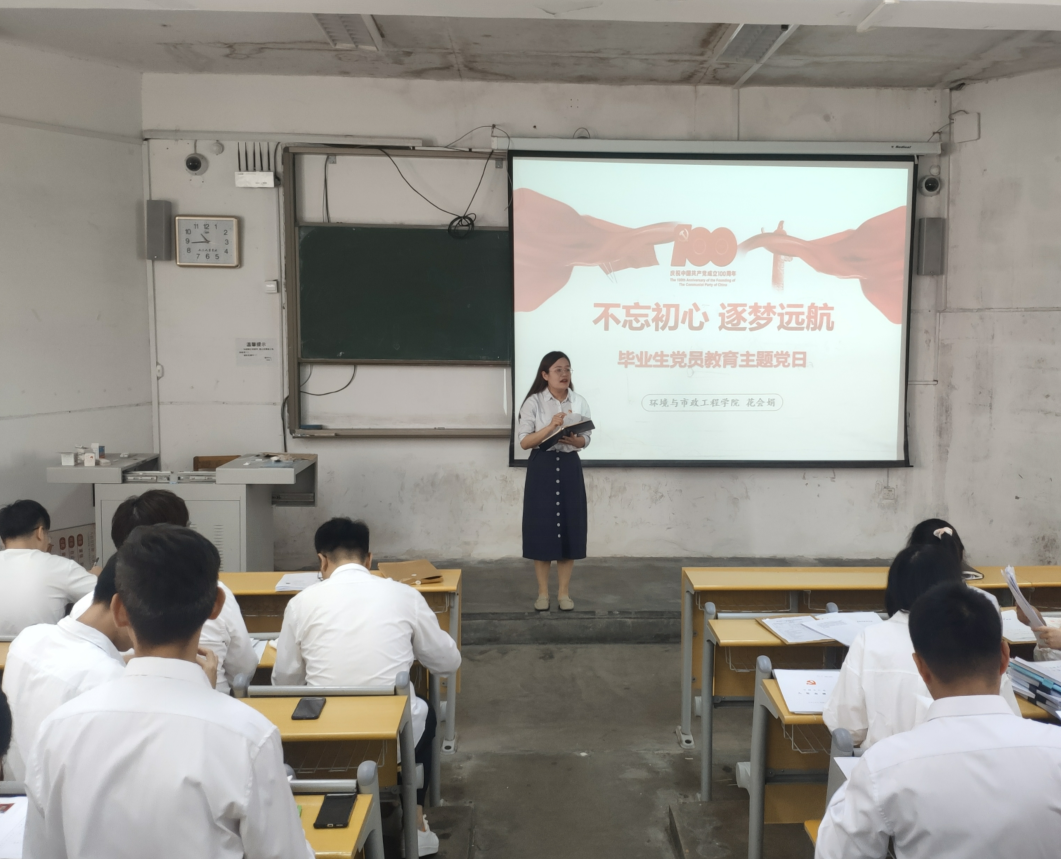 为做好2021届毕业生党员教育管理,环境与市政工程学院以“不忘初心、筑梦远航”为主题组织毕业生党员教育活动,2017级辅导员花会娟、王登榜以及全体毕业生党员参加活动。